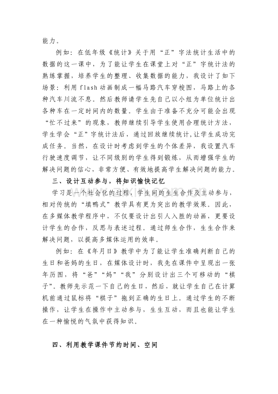 如在教学《年月日》的一节网络课中,由于本课的内容点较多,而且知识比较枯燥无味,教师传统的教学手段和学生单一的学习方式,将不会影响学生对知识的深刻的认识与理解。于是,在设计环节时,我除了按照正常的设计课件,设计互动等环节外,我还另制作了年月日学习软件,将本课知识点,用FLASH软件设计出一种诸如网页的形式,里面包括选择题、判断题、等(所有题目练习完后,都可以得到正确、快速的反馈),此外我还添加了一些关于年月日的课外知识,这让学生在学习完新课时,对新课得到针对、有效地巩固,学习效果非常明显。从而多方面减少教师和学生的负担。