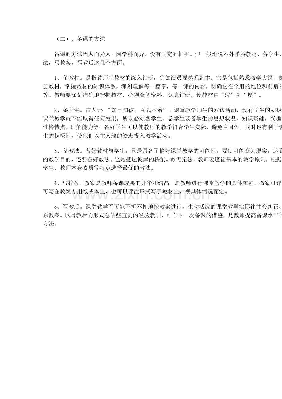 备课对于教师来说尤为重要,它是青年教师取得教学经验,掌握教学规律,提高教学水平的必由之路。它对于中老年教师同样不可缺少,因为教材内容不断更新,学生的情况不断变化,教学改革不断深入,中老年教师要适应新的形势,就必须坚持认真备课,以探索新的教学方法,提高教学艺术水平。关于教师如何精心备好课,就自己的经验谈谈备课的要求和方法及如何写好教案等问题。