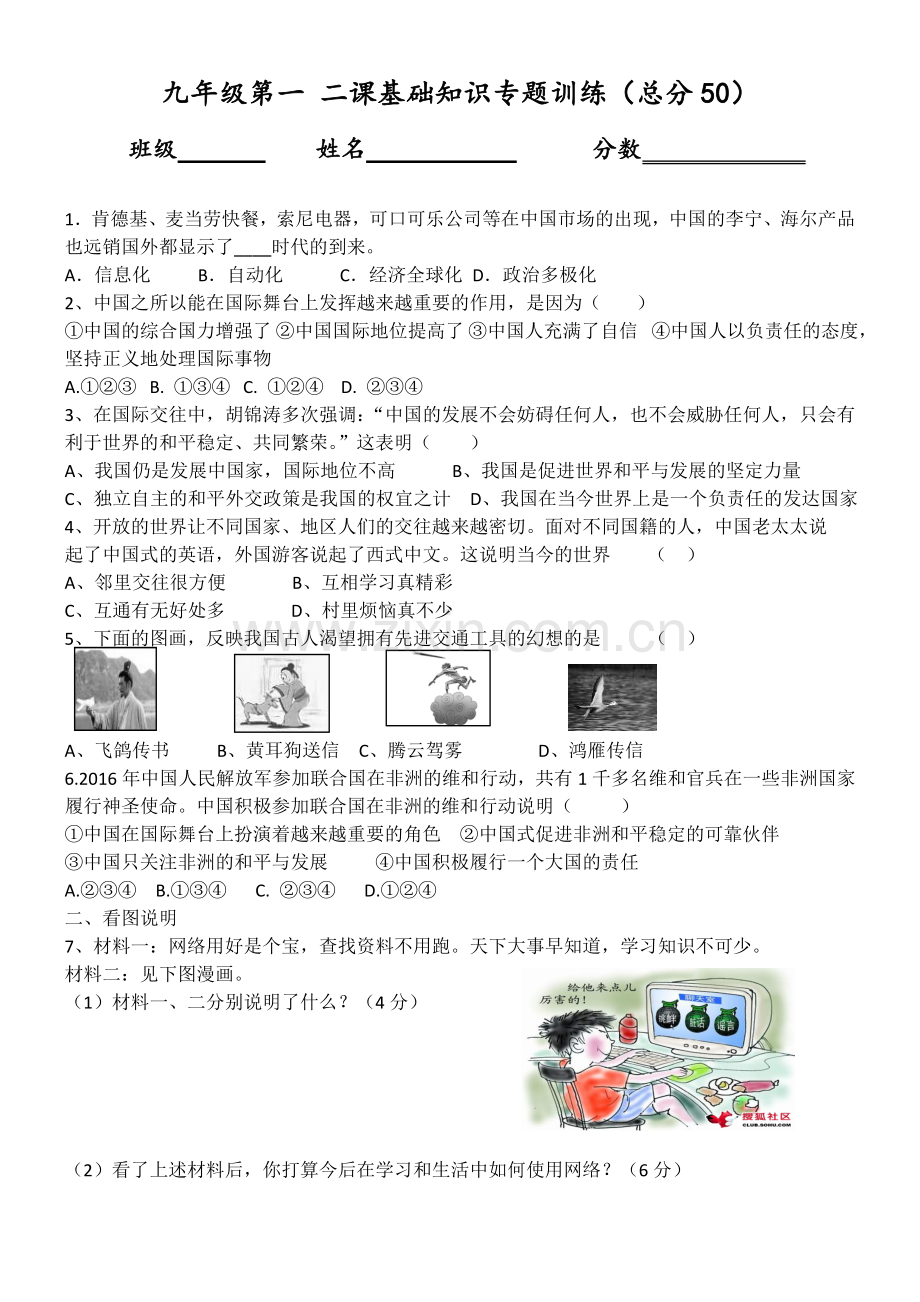 1.肯德基、麦当劳快餐,索尼电器,可口可乐公司等在中国市场的出现,中国的李宁、海尔产品也远销国外都显示了____时代的到来。