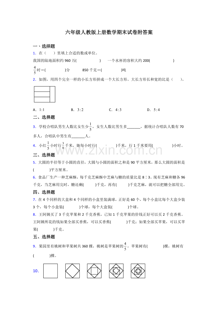2.如图,用四个完全一样的小长方形拼成一个大长方形。大长方形长和宽的比是( )。