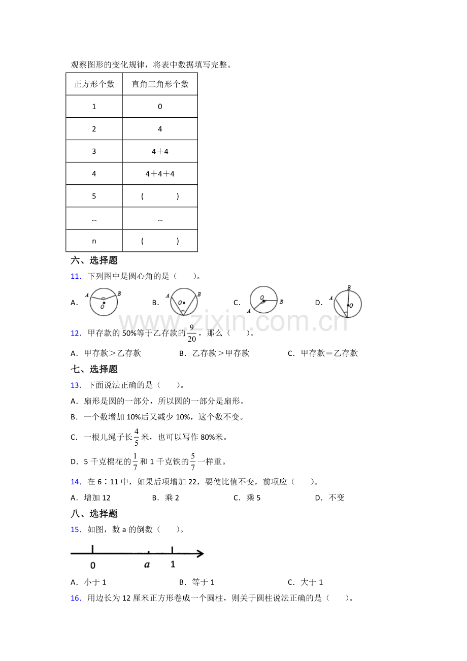 5.大圆的半径等于小圆的直径,大圆与小圆的面积之和是90平方厘米,那么大圆的面积是( )平方厘米。