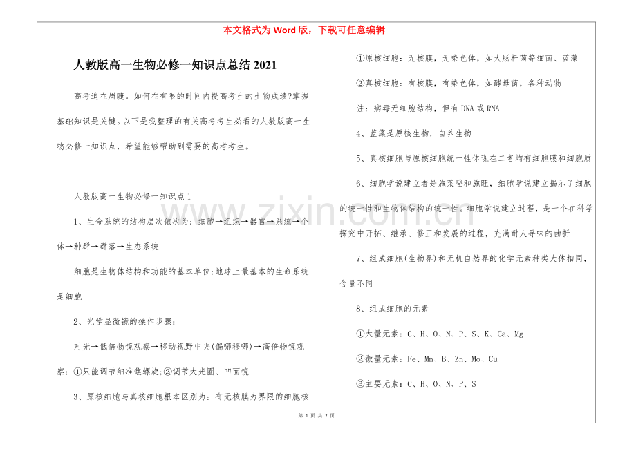 高考迫在眉睫。如何在有限的时间内提高考生的生物成绩?掌握基础知识是关键。以下是我整理的有关高考考生必看的人教版高一生物必修一知识点,希望能够帮助到需要的高考考生。