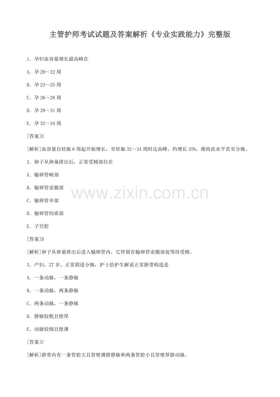 主管护师考试试题及答案解析《专业实践能力》完整版