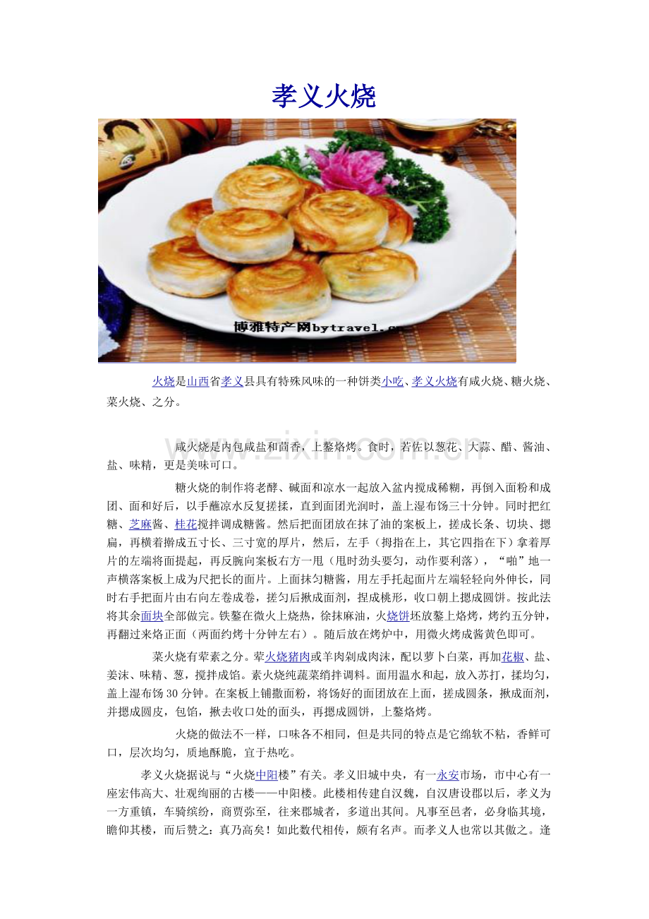 火烧是山西省孝义县具有特殊风味的一种饼类小吃、孝义火烧有咸火烧、糖火烧、菜火烧、之分。