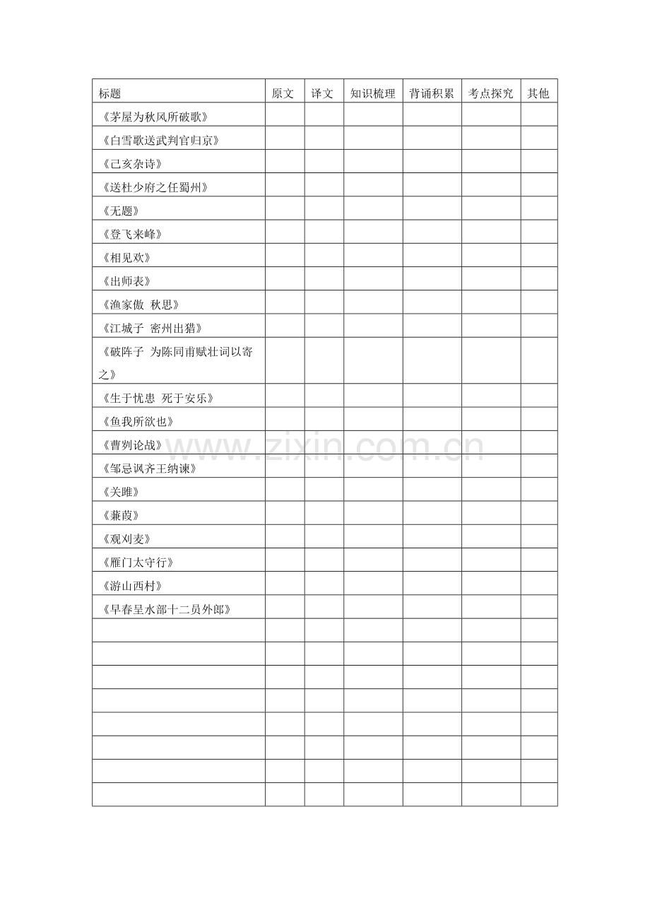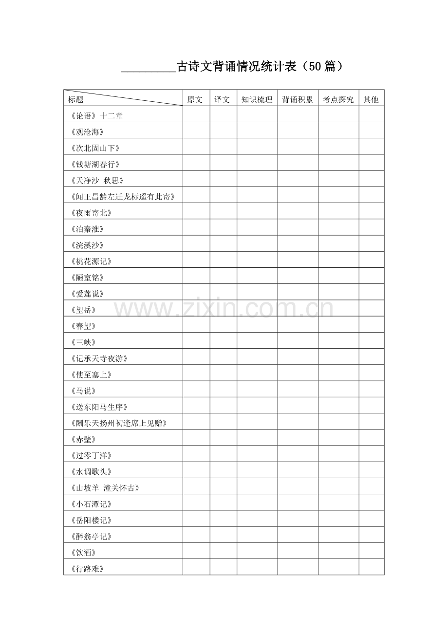 _________古诗文背诵情况统计表(50篇)