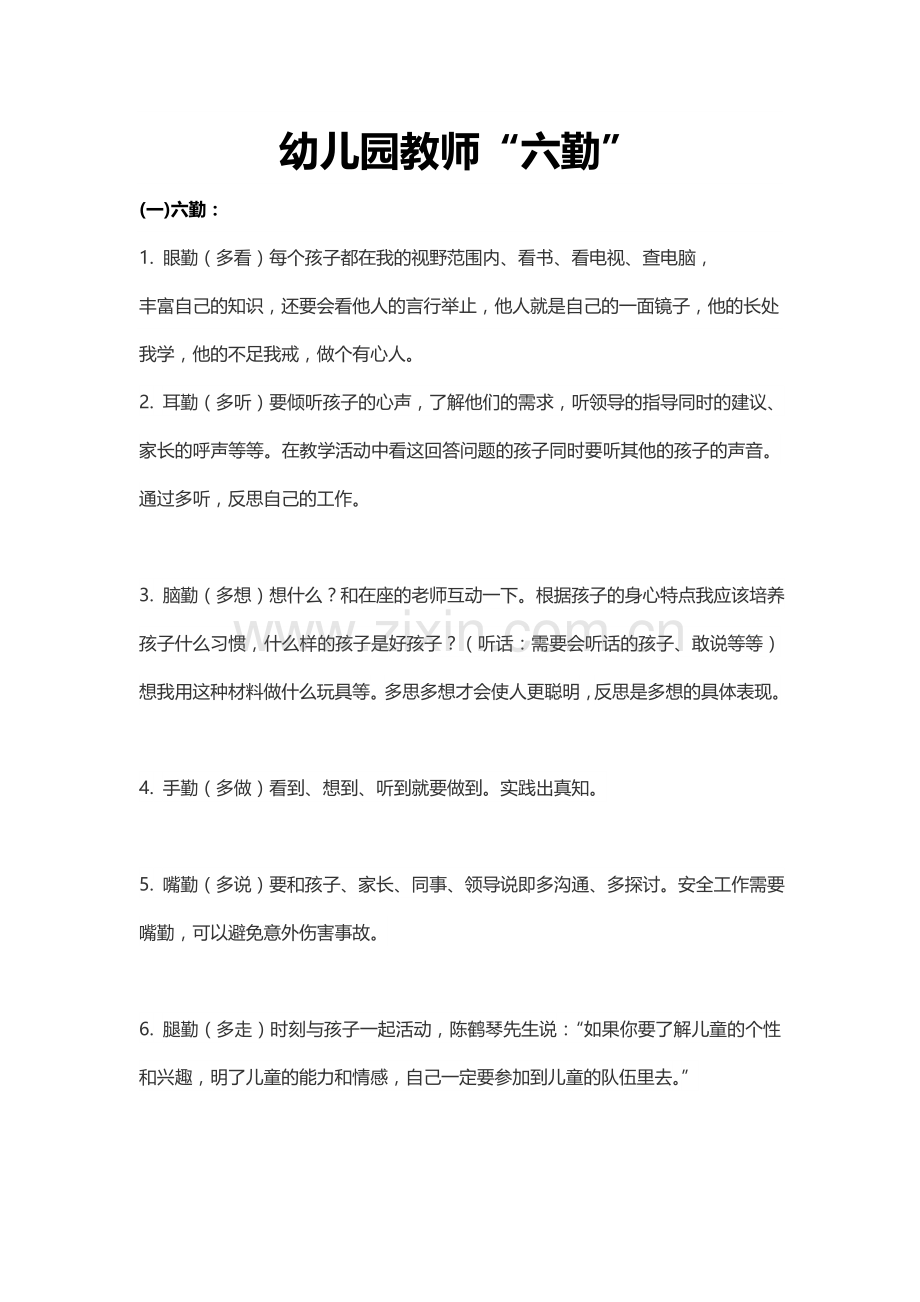 2. 耳勤(多听)要倾听孩子的心声,了解他们的需求,听领导的指导同时的建议、家长的呼声等等。在教学活动中看这回答问题的孩子同时要听其他的孩子的声音。通过多听,反思自己的工作。