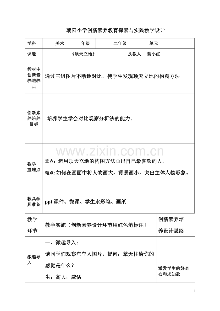 教学实施(创新素养设计环节用红色笔标注)