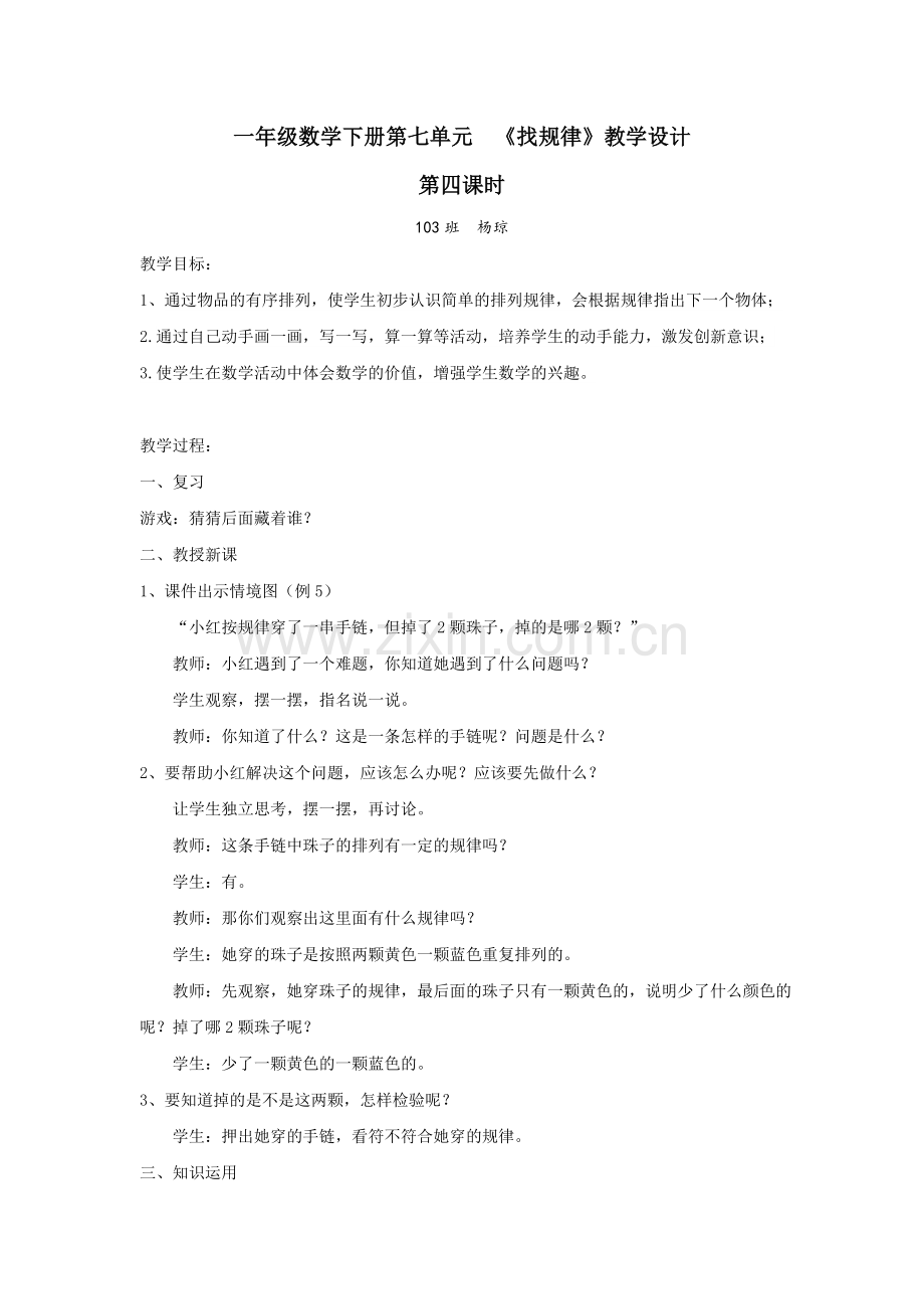 在这节课中,我初步认为教学目标是:1.通过物品的有序排列,使学生初步认识简单的排列规律,会根据规律指出下一个物体;2.通过自己动手画一画,写一写,算一算等活动,培养学生的动手能力,激发创新意识;3.使学生在数学活动中体会数学的价值,增强学生数学的兴趣。在教学时,我能结合班级学生的实际情况,开发教材,使学生在循序渐进的过程中不断地认识规律。整节课,教师与学生融为一体,学生兴趣盎然,收到了较好的教学效果。但是,对于这节课的教学,还存在以下不足: