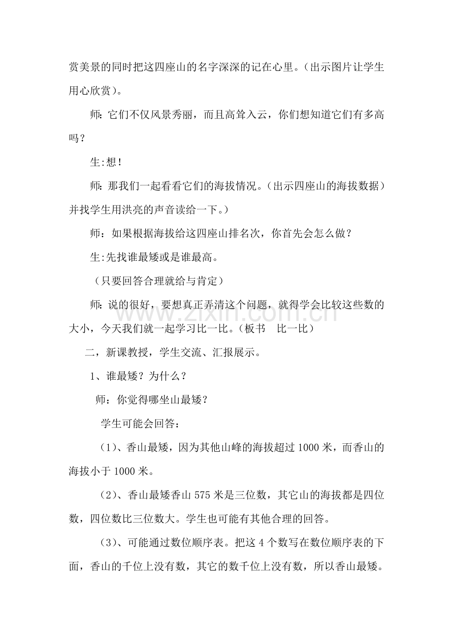师:如果根据海拔给这四座山排名次,你首先会怎么做?