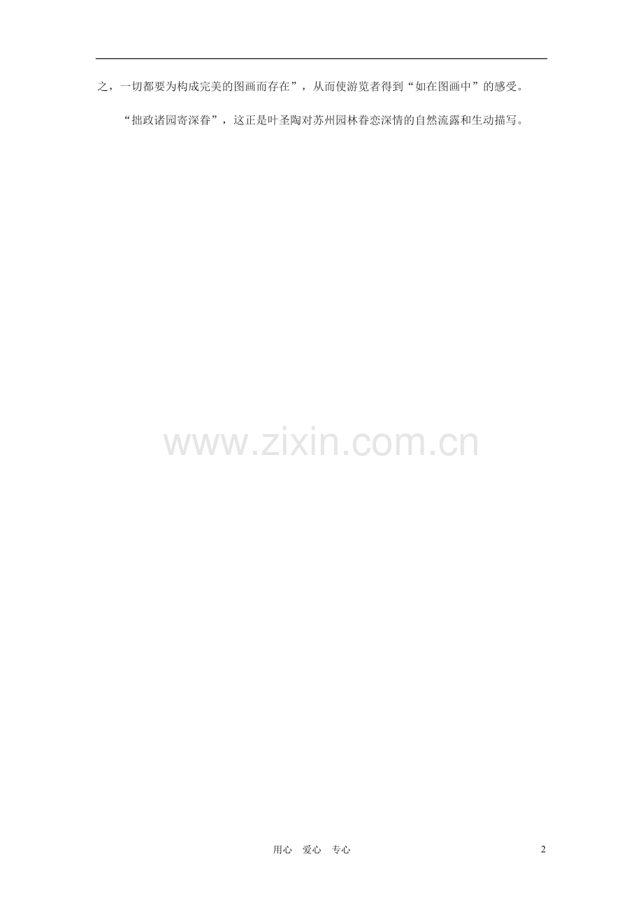 “拙政诸园寄深眷”,这正是叶圣陶对苏州园林眷恋深情的自然流露和生动描写。