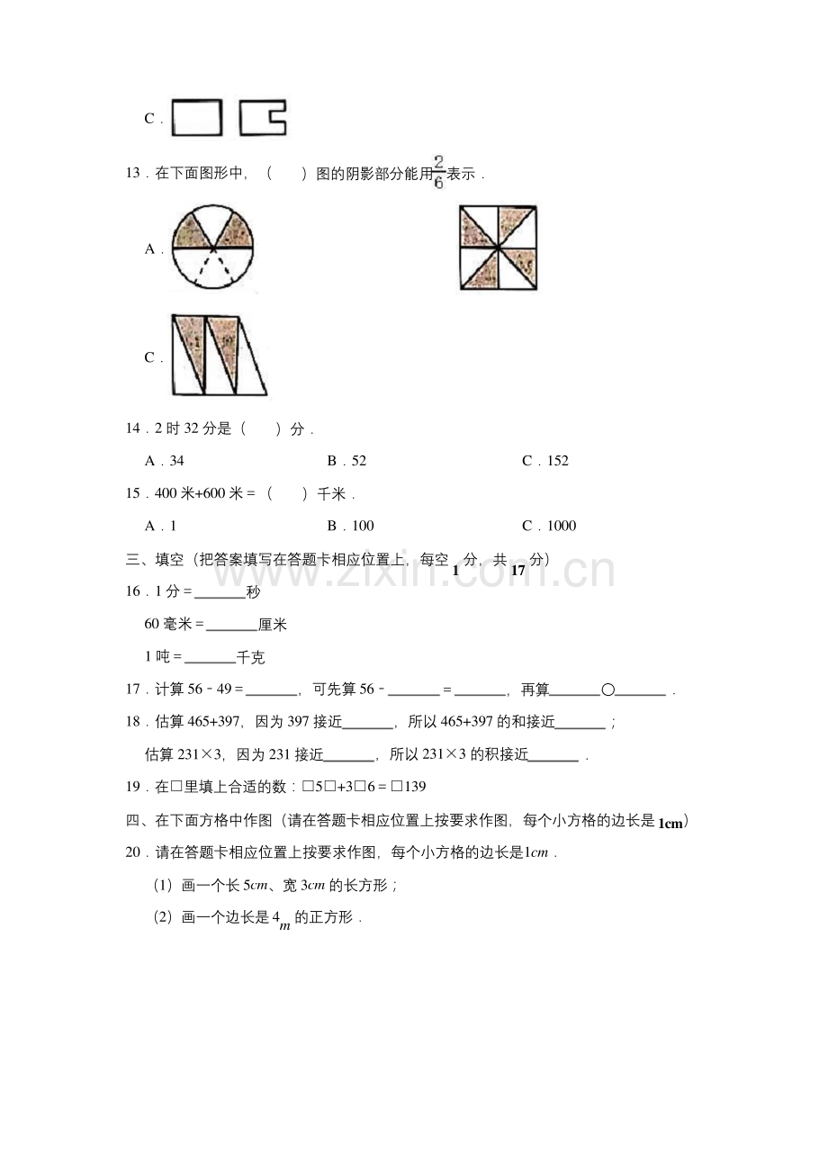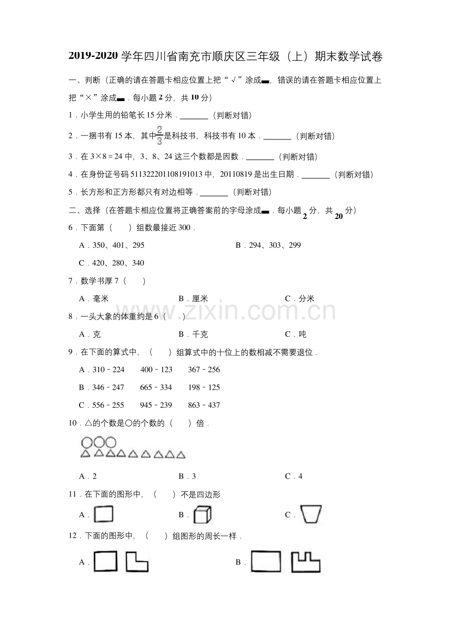 学年四川省南充市顺庆区三年级(上)期末数学试卷