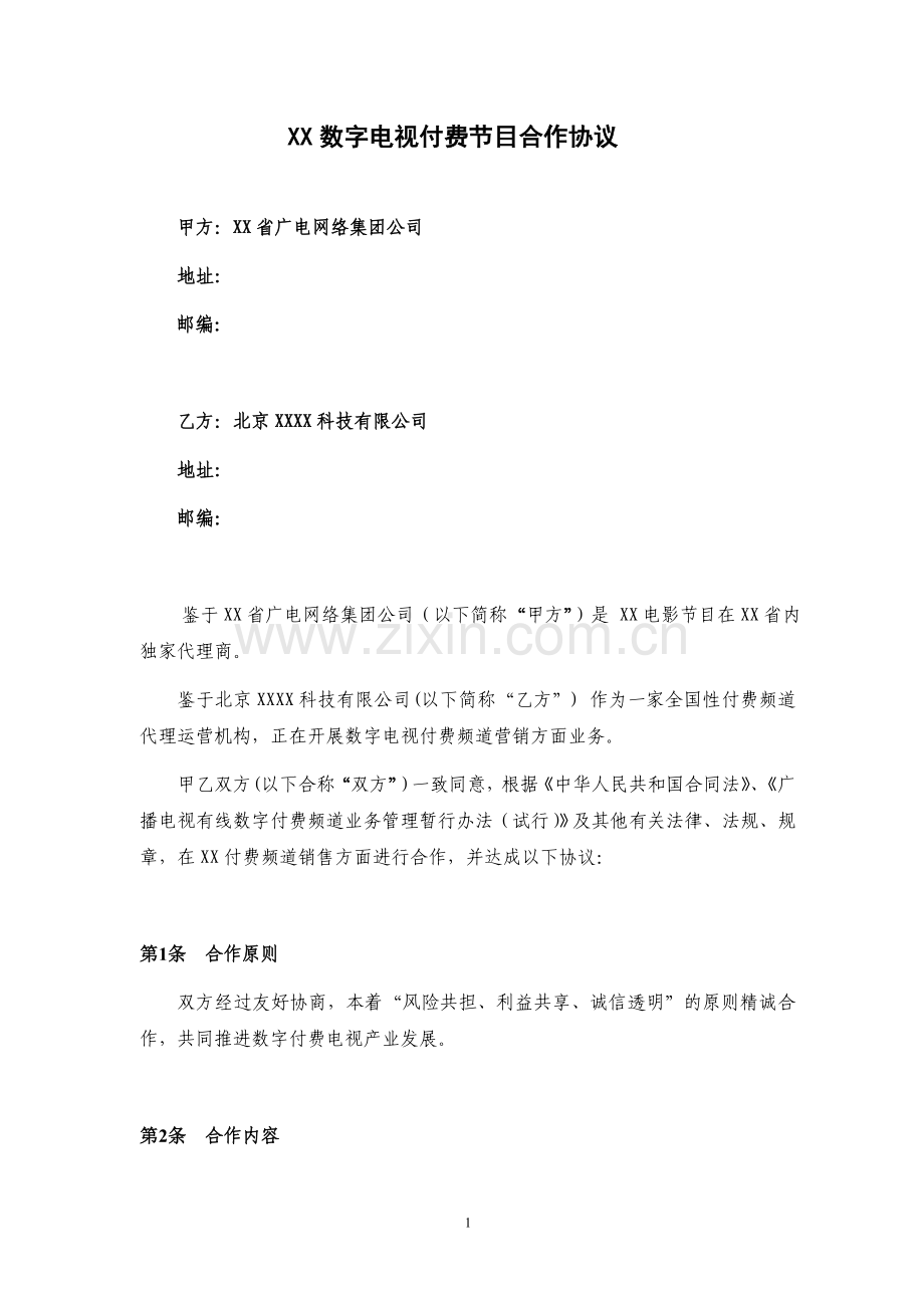 鉴于北京XXXX科技有限公司(以下简称“乙方”) 作为一家全国性付费频道代理运营机构,正在开展数字电视付费频道营销方面业务。