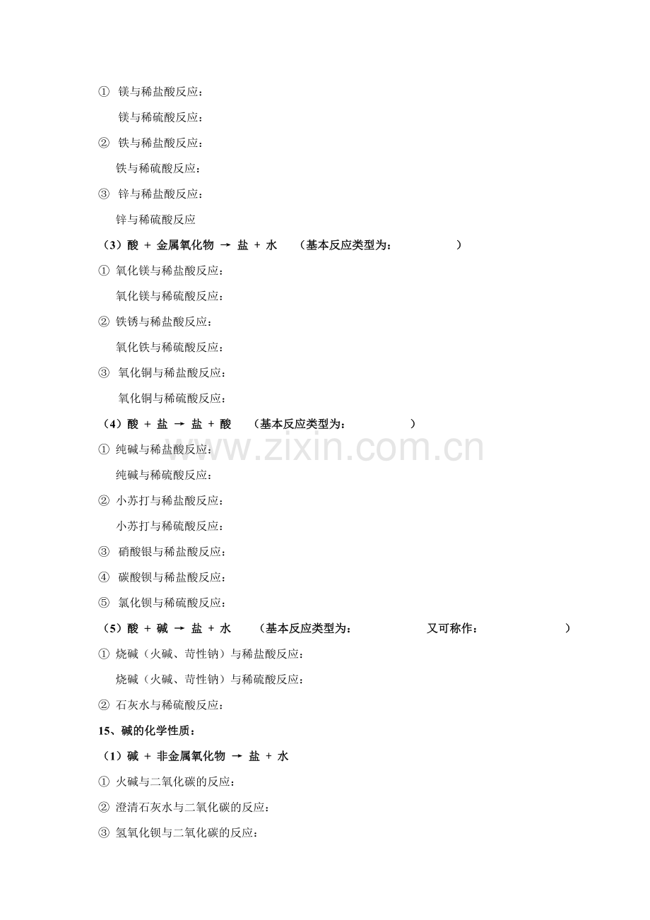 (2)酸 + 金属 → 盐 + 氢气 (基本反应类型: )