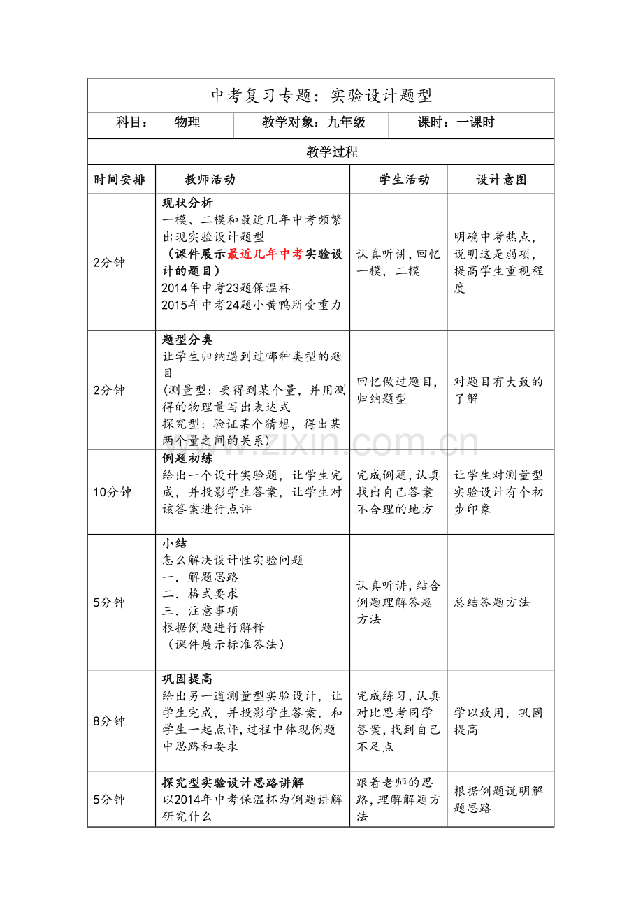给出另一道测量型实验设计,让学生完成,并投影学生答案,和学生一起点评,过程中体现例题中思路和要求