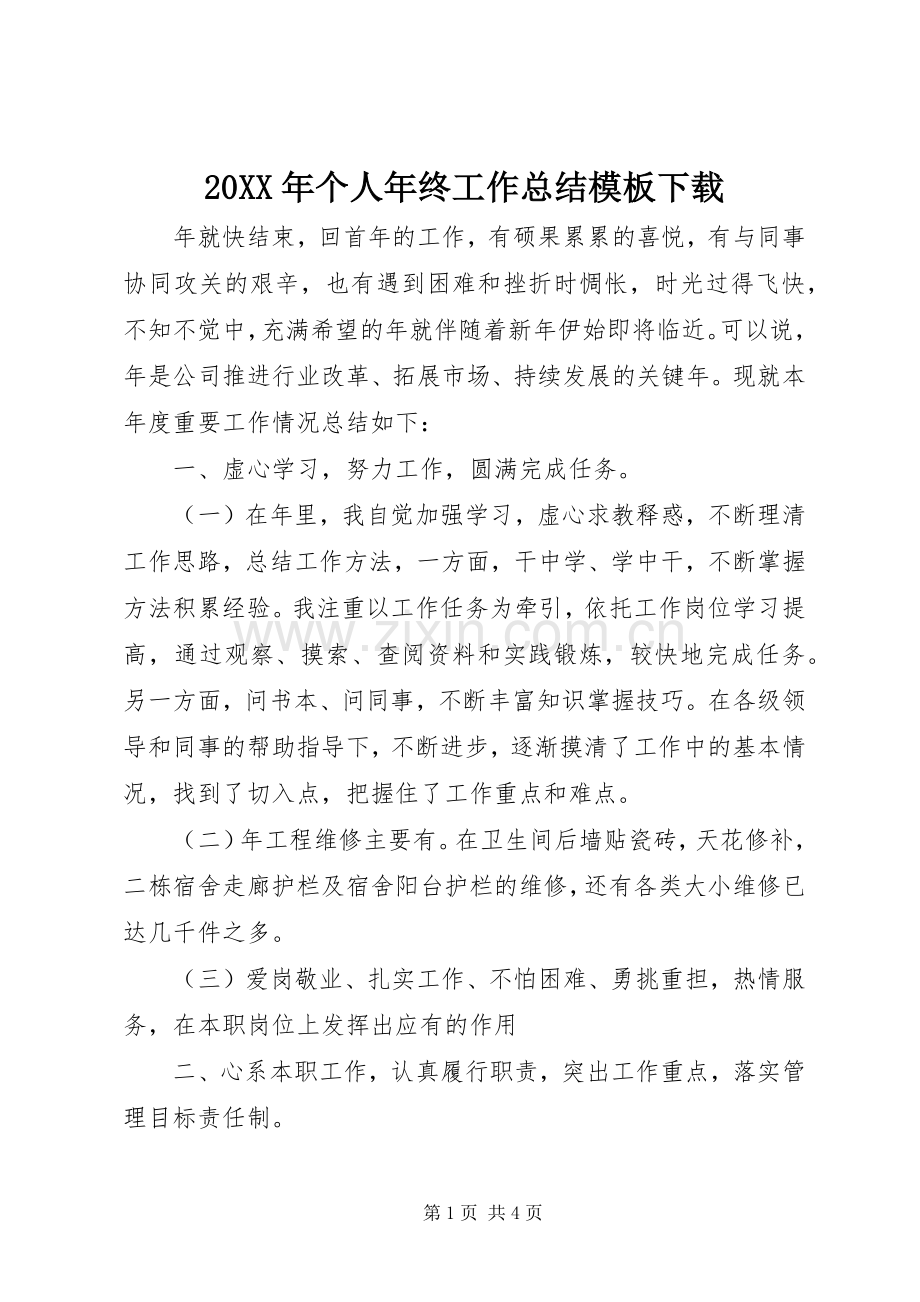20XX年个人年终工作总结模板下载