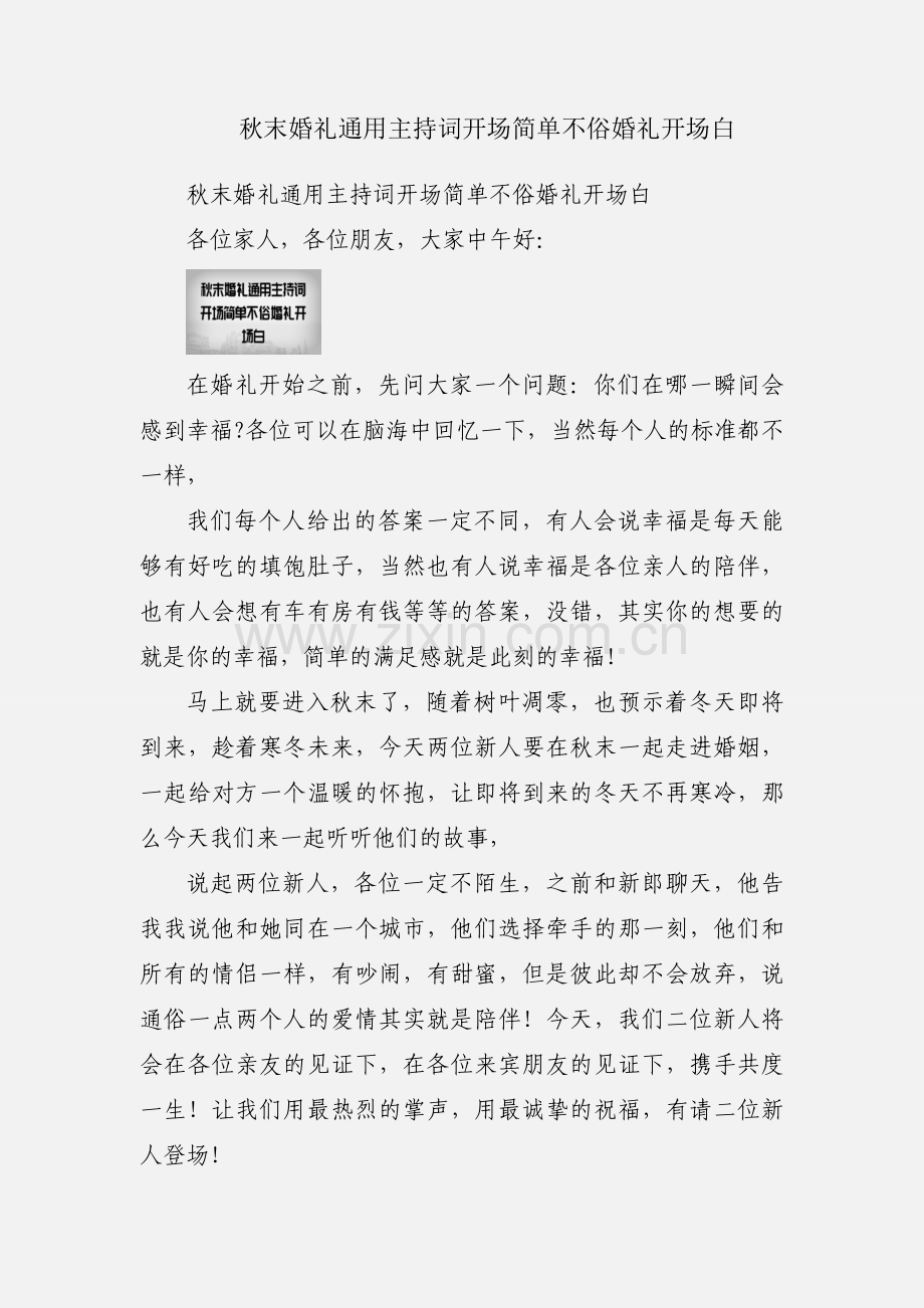 秋末婚礼通用主持词开场简单不俗婚礼开场白