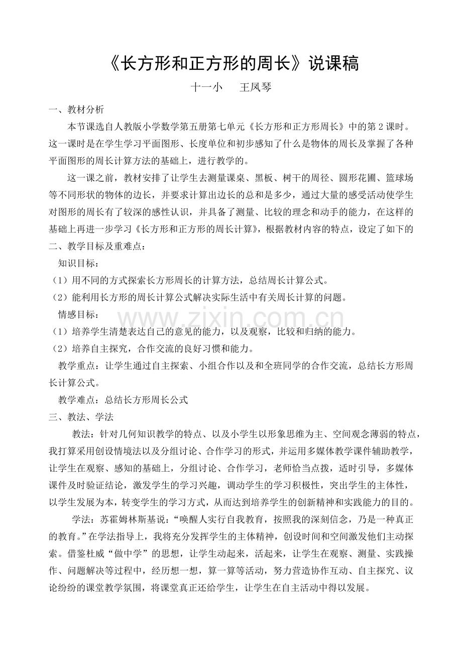 本节课选自人教版小学数学第五册第七单元《长方形和正方形周长》中的第2课时。这一课时是在学生学习平面图形、长度单位和初步感知了什么是物体的周长及掌握了各种平面图形的周长计算方法的基础上,进行教学的。