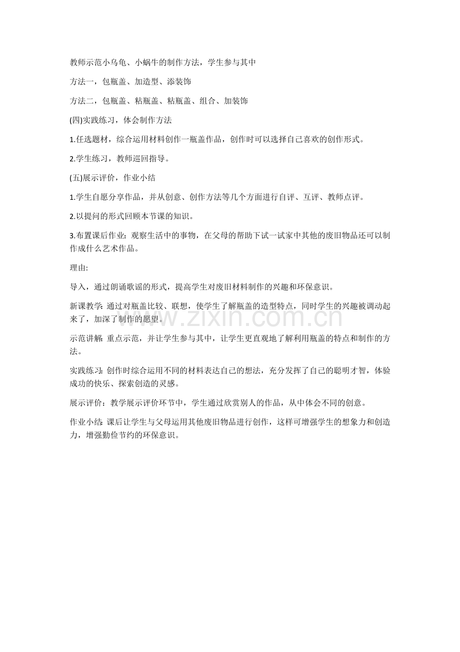 过程与方法:能够利用废弃的瓶盖进行创作,将各种瓶盖组合起来制作有趣的物品。