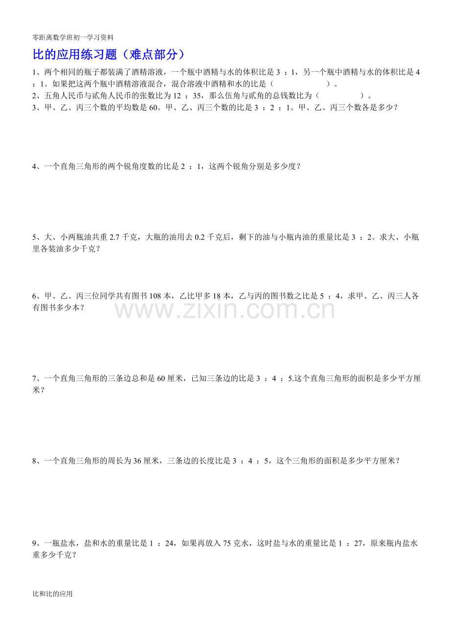 比的应用练习题(难点部分)
