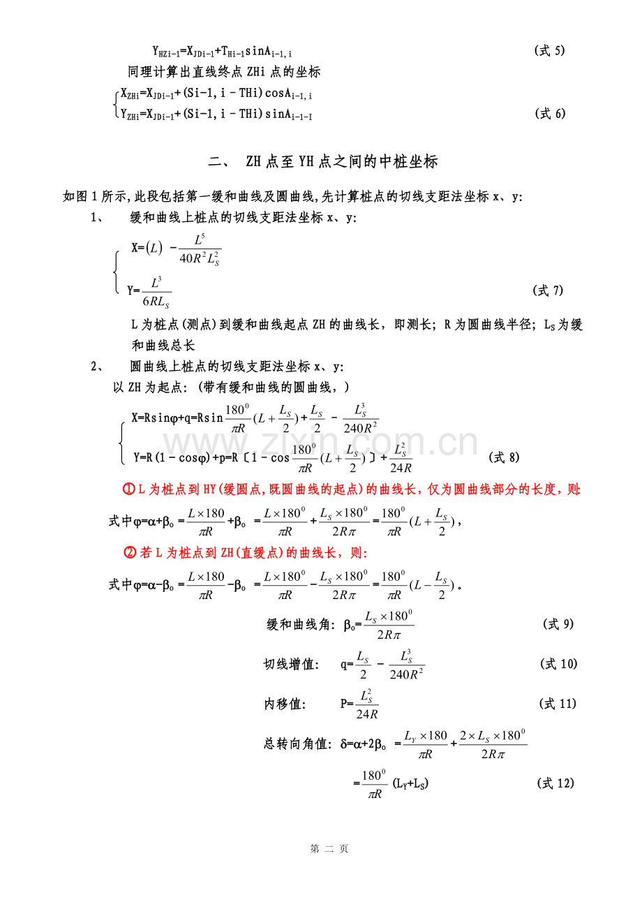 一、 HZ点(包括线路起点)至ZH点之间的中桩坐标