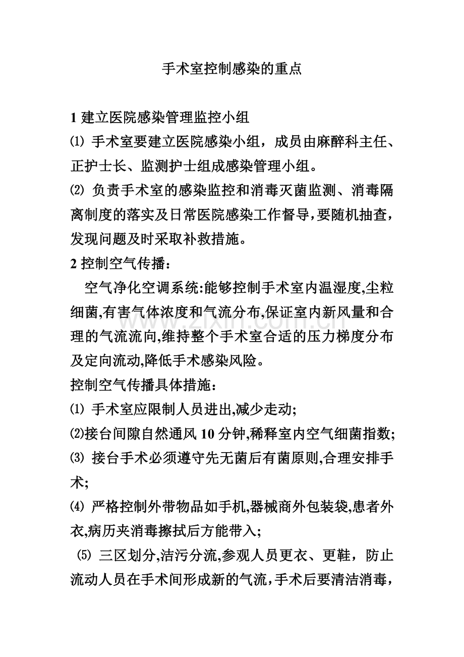 ⑴ 手术室要建立医院感染小组,成员由麻醉科主任、正护士长、监测护士组成感染管理小组。