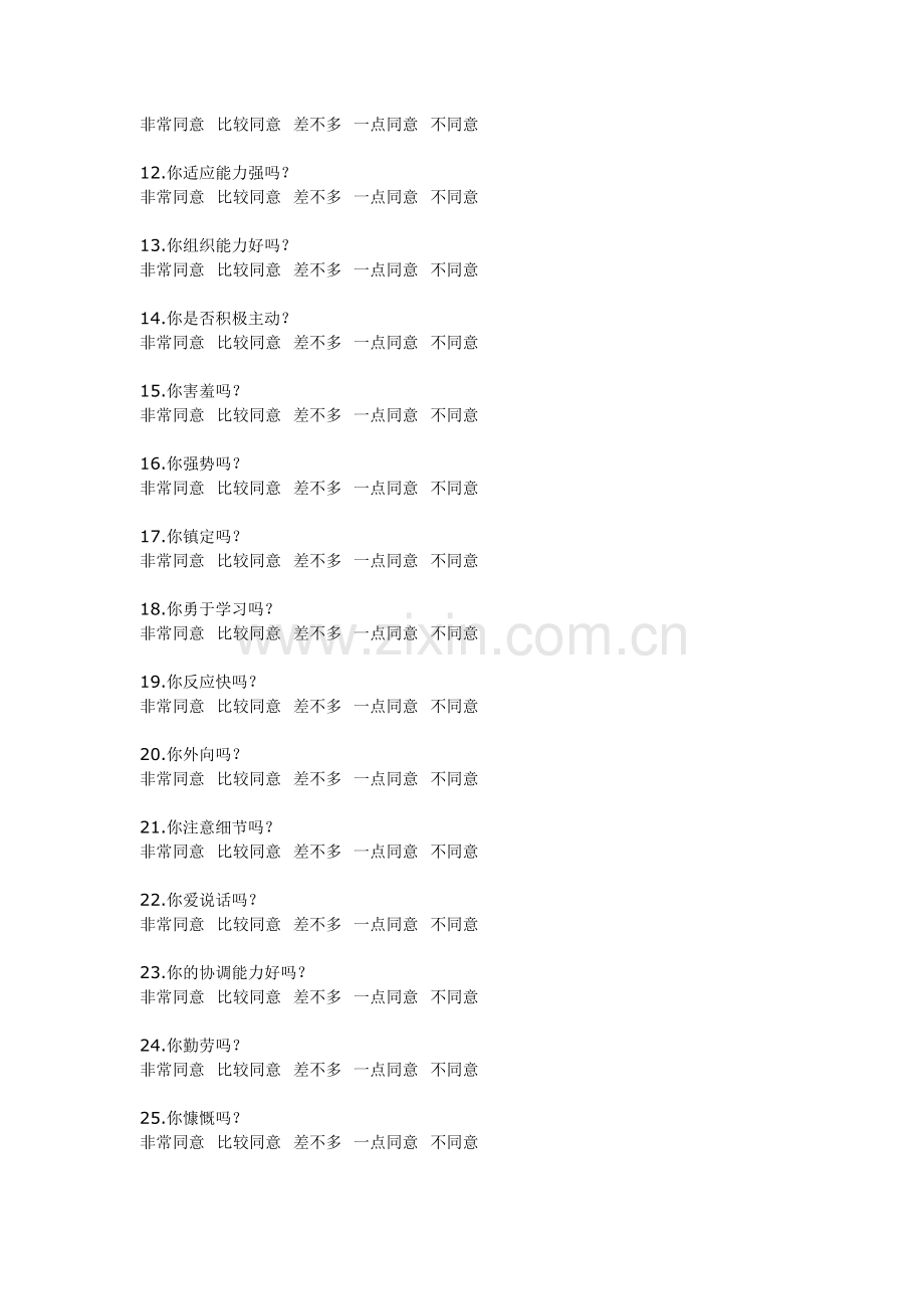 非常同意 比较同意 差不多 一点同意 不同意