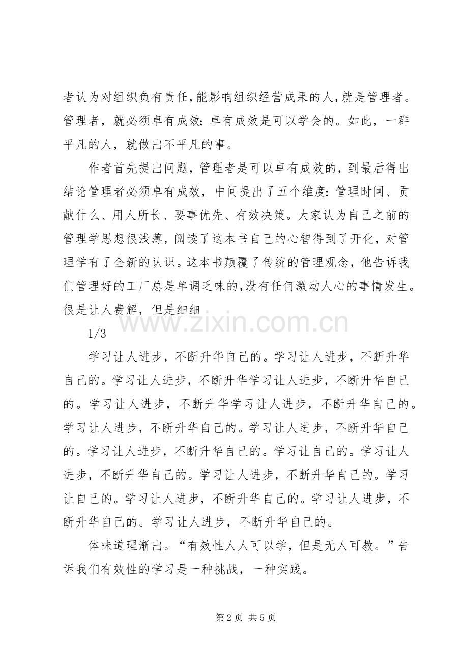 体味道理渐出。“有效性人人可以学,但是无人可教。”告诉我们有效性的学习是一种挑战,一种实践。