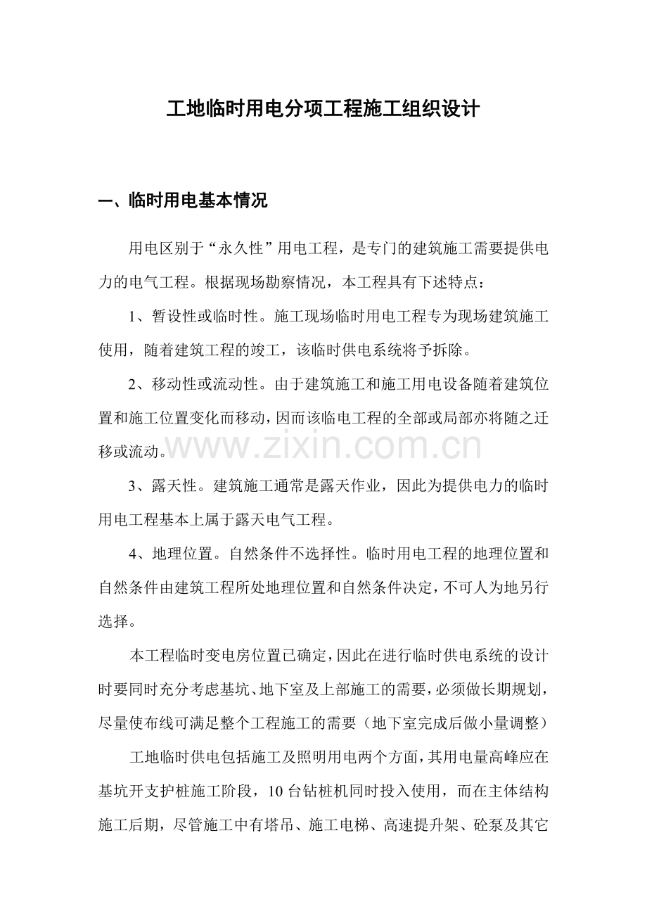 本工程临时变电房位置已确定,因此在进行临时供电系统的设计时要同时充分考虑基坑、地下室及上部施工的需要,必须做长期规划,尽量使布线可满足整个工程施工的需要(地下室完成后做小量调整)