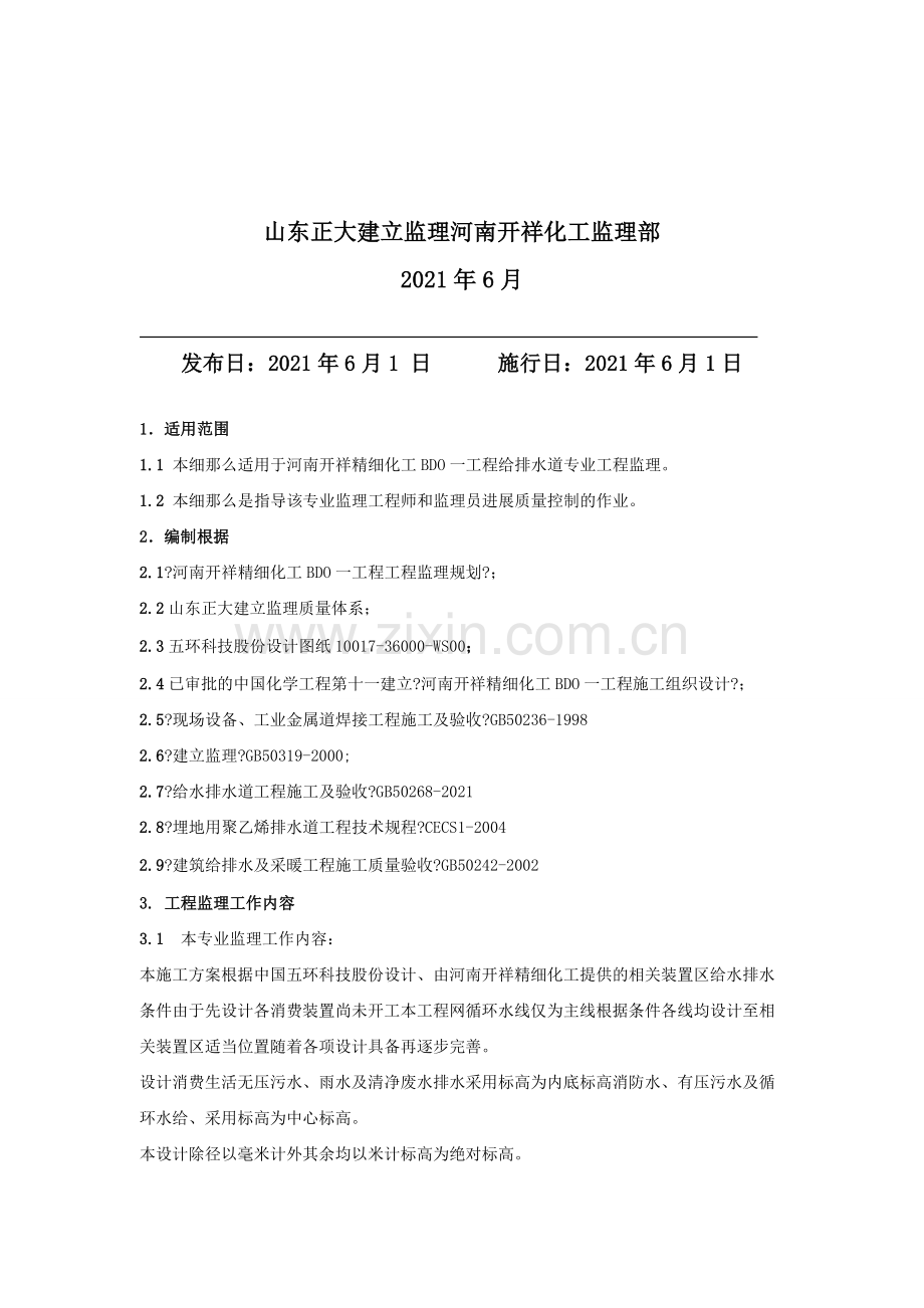 1.1 本细那么适用于河南开祥精细化工BDO一工程给排水道专业工程监理。