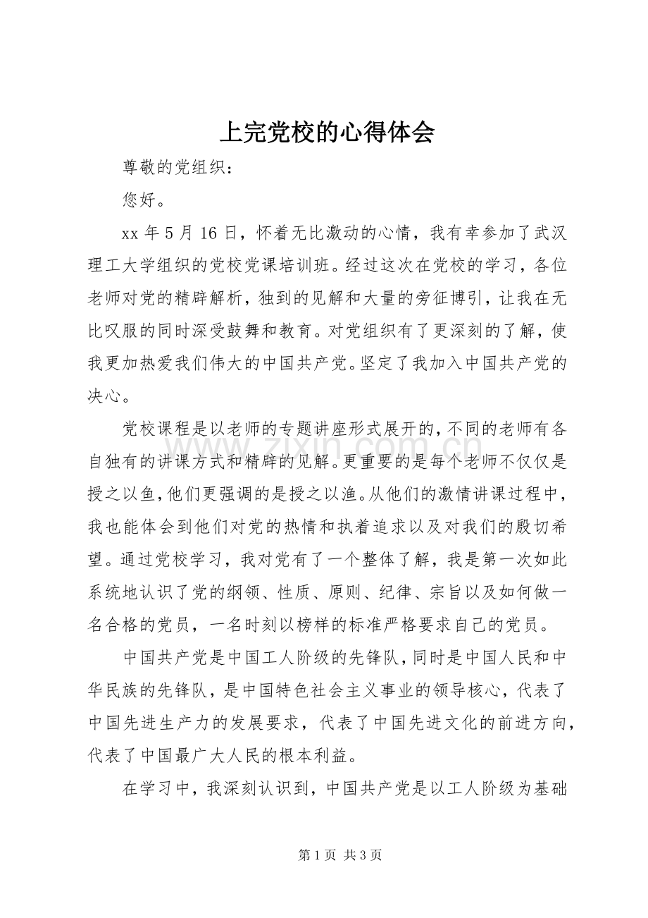 xx年5月16日,怀着无比激动的心情,我有幸参加了武汉理工大学组织的党校党课培训班。经过这次在党校的学习,各位老师对党的精辟解析,独到的见解和大量的旁征博引,让我在无比叹服的同时深受鼓舞和教育。对党组织有了更深刻的了解,使我更加热爱我们伟大的中国共产党。坚定了我加入中国共产党的决心。