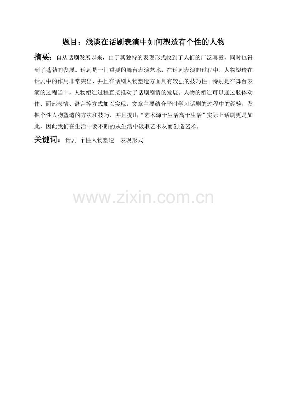 题目:浅谈在话剧表演中如何塑造有个性的人物