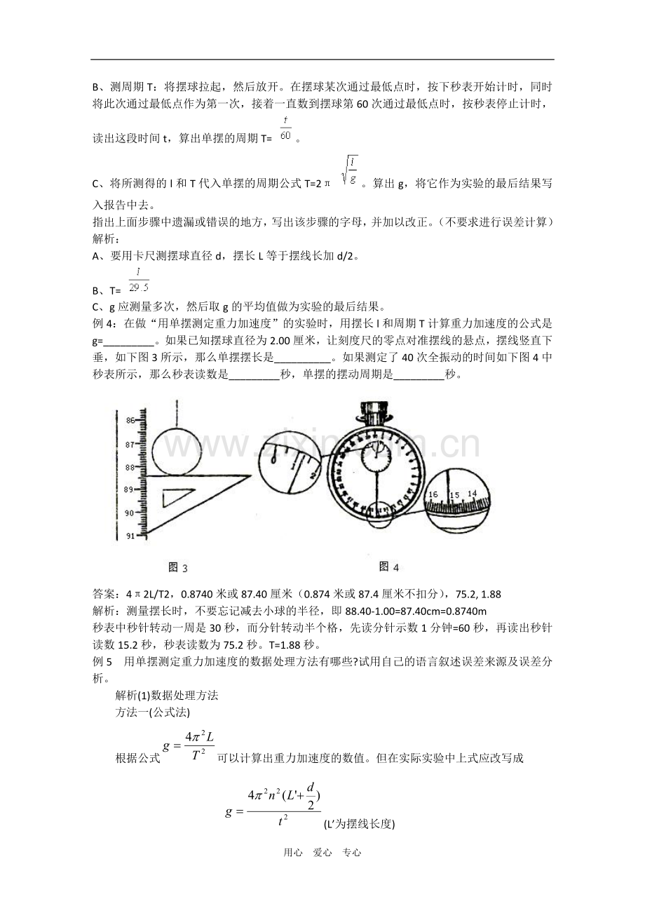 例5 用单摆测定重力加速度的数据处理方法有哪些?试用自己的语言叙述误差来源及误差分析。