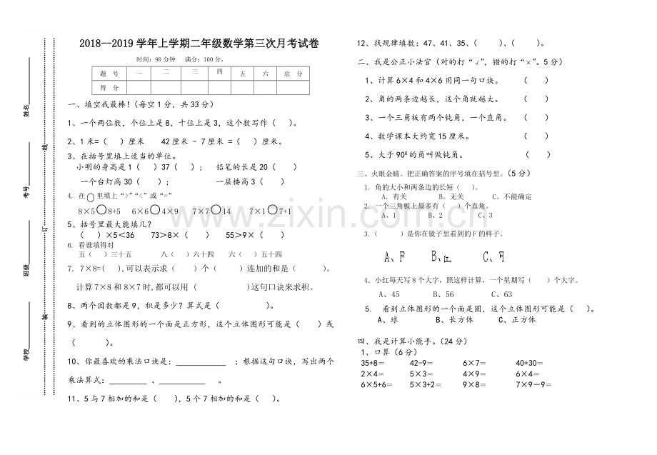 2、兰兰:我做了47道口算题。丽丽:我做的比兰兰少19道。丽丽做了多少道?(4分)