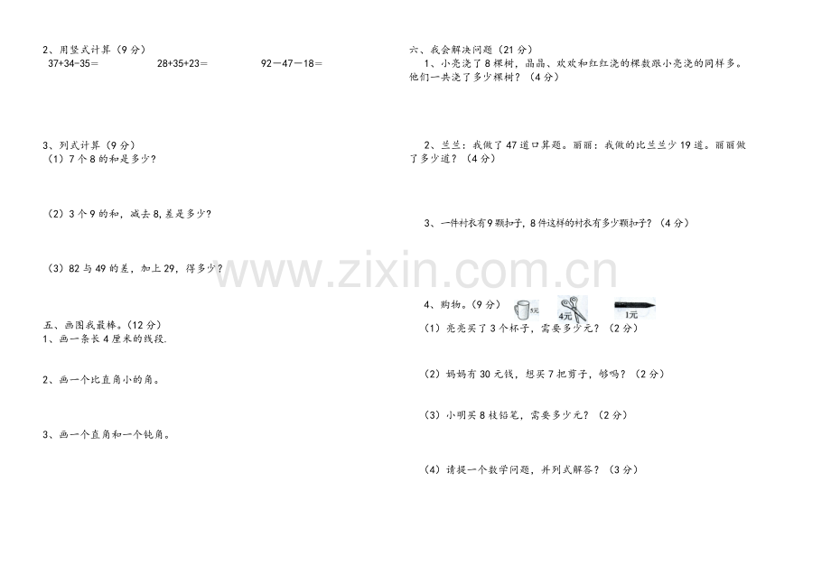 (2)妈妈有30元钱,想买7把剪子,够吗?(2分)