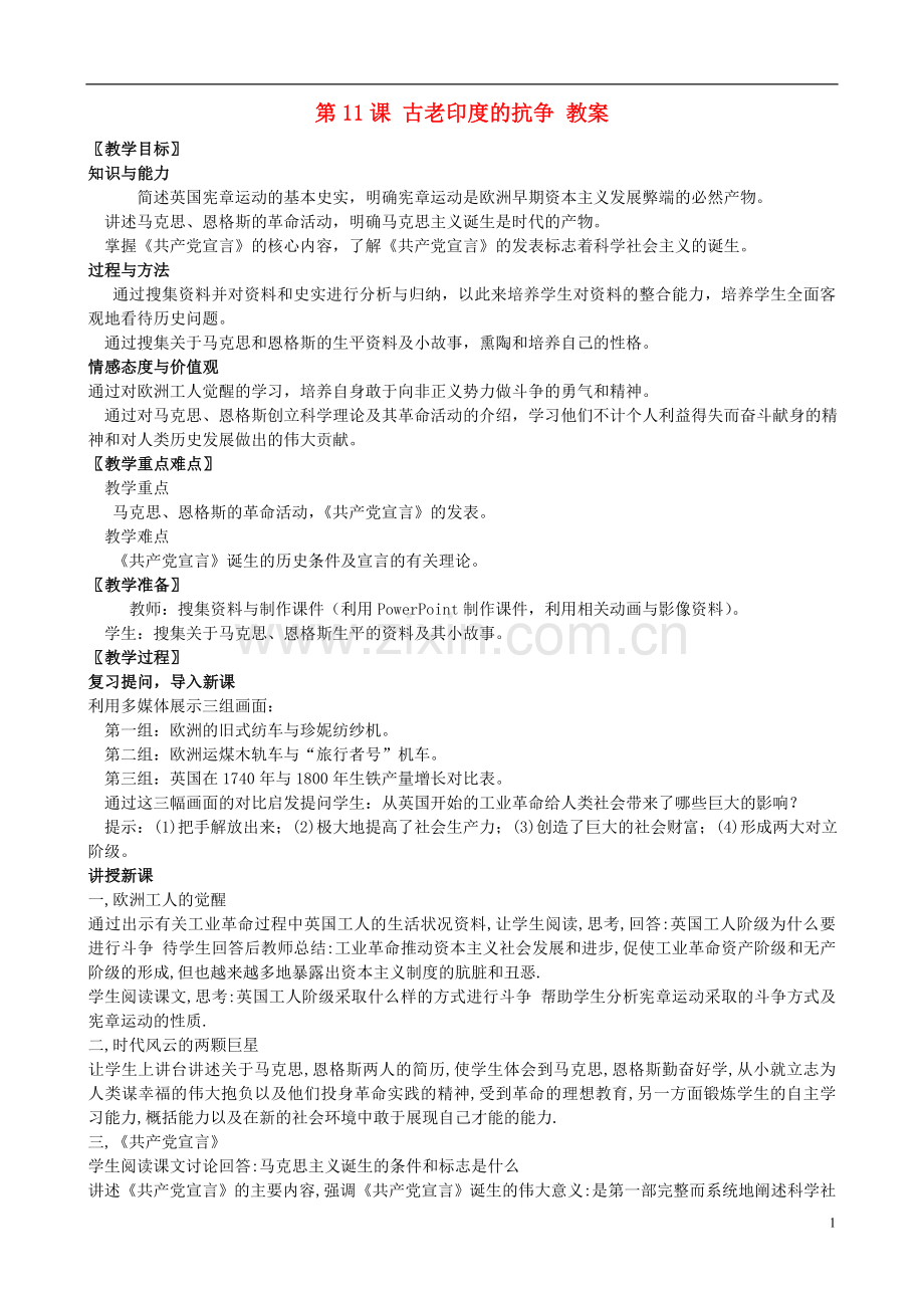 第11课 古老印度的抗争 教案