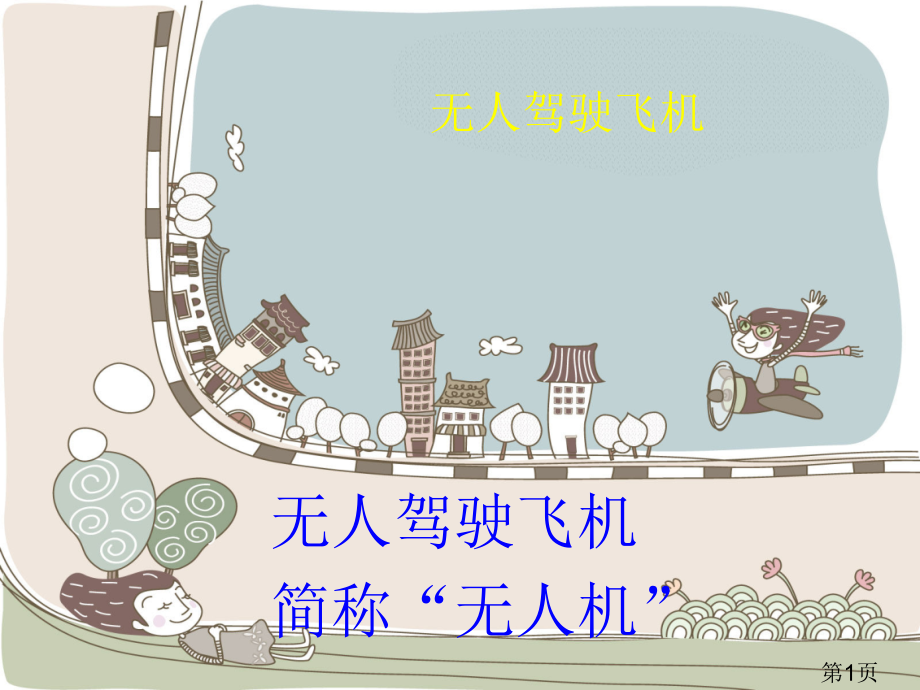 单击此处编辑母版标题样式,单击此处编辑母版文本样式,第二级,第三级,第四级,第五级,*,本幻灯片资料仅供参考,不能作为科学依据,如有不当之处,请参考专业资料。谢谢,无人驾驶飞机,简称“无人机”,无人驾驶飞机,第1页,飞机结构组成,第2页,无人机的主要特点及功能,第3页,1,没有驾驶舱,但有自动驾驶仪、程序控制装置等设备。地面、舰船上或母机遥控站人员经过雷达等设备,对其进行跟踪、定位、遥控、遥测和数字传输。可在无线电遥控下像普通飞机一样起飞或用火箭发射升空,也可由飞机带到空中放开飞行。回收时,可用与普通飞机一样方式自动着陆,也可经过遥控降落伞或拦网回收。可重复使用屡次,。,无人机的主要特点,第4页,作为靶机,侦察监视,骗敌诱饵,实施干扰,对地攻击,校射作用,通信中继,无人机的主要功能,第5页,多功效无人机,人工智能无人机,长时间留空无人机,反导弹无人机,预警无人机,隐身无人机,微型无人机,空战无人机,无人机的种类,第6页,第7页,第8页,第9页,第10页,第11页,第12页,第13页,第14页,第15页,第16页,第17页,第18页,