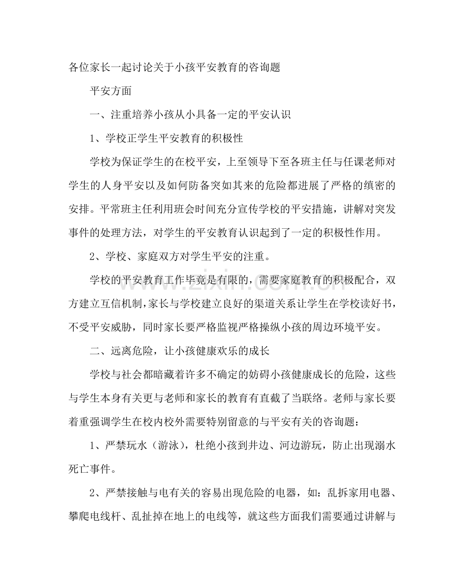 但平安教育也与在座的各位家长息息相关,今天就这个话题我想和各位家长一起讨论关于小孩平安教育的咨询题