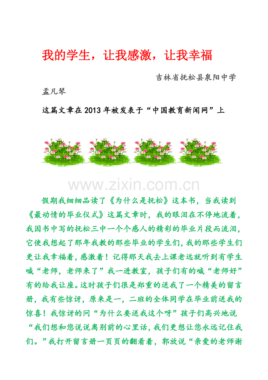 这篇文章在2013年被发表于“中国教育新闻网”上