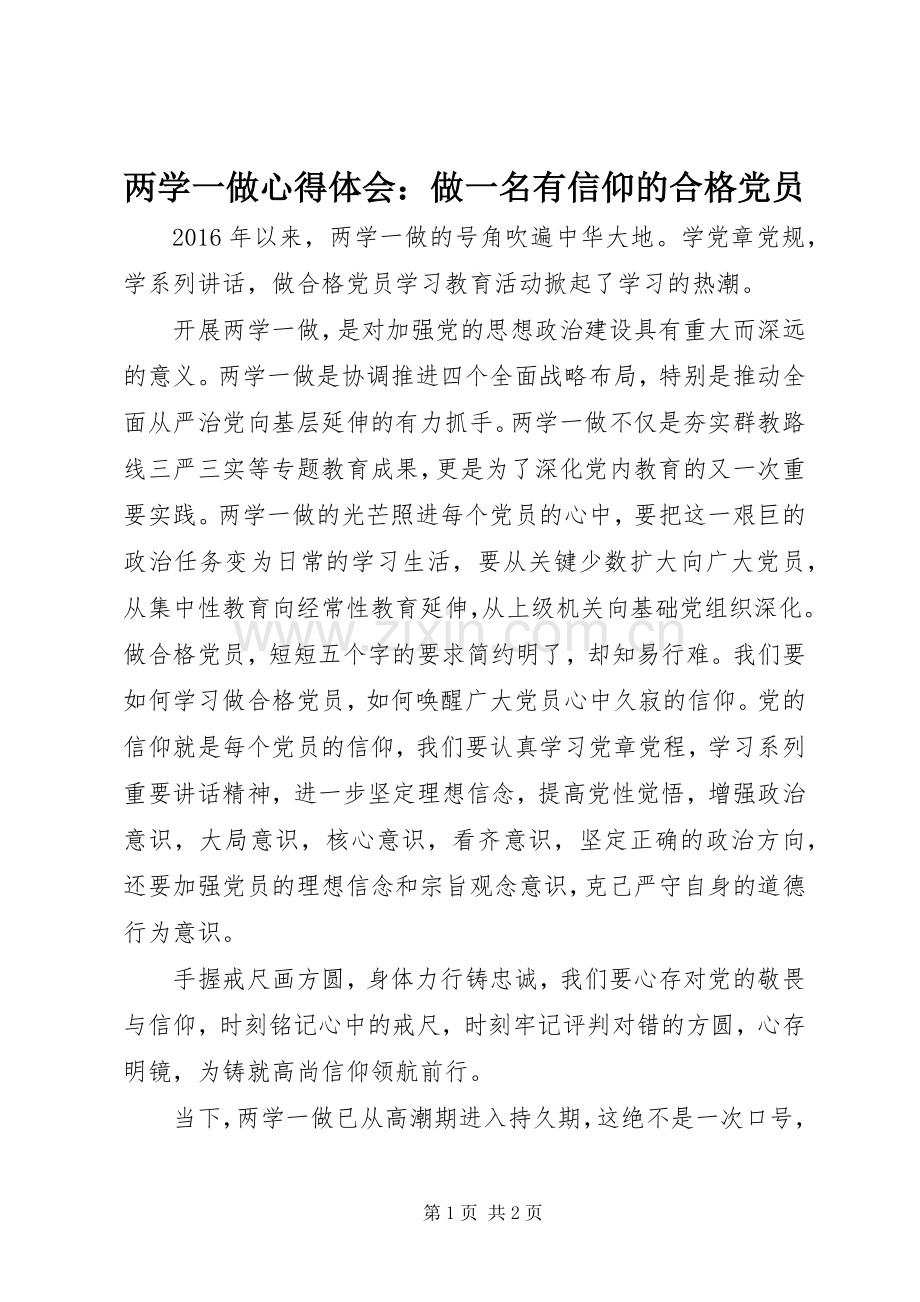 两学一做心得体会:做一名有信仰的合格党员