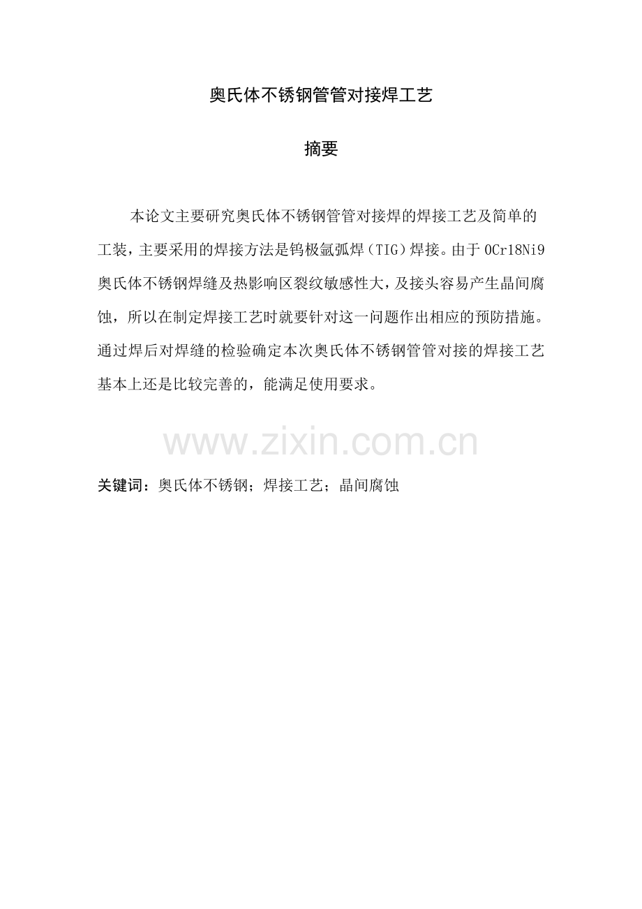 本论文主要研究奥氏体不锈钢管管对接焊的焊接工艺及简单的