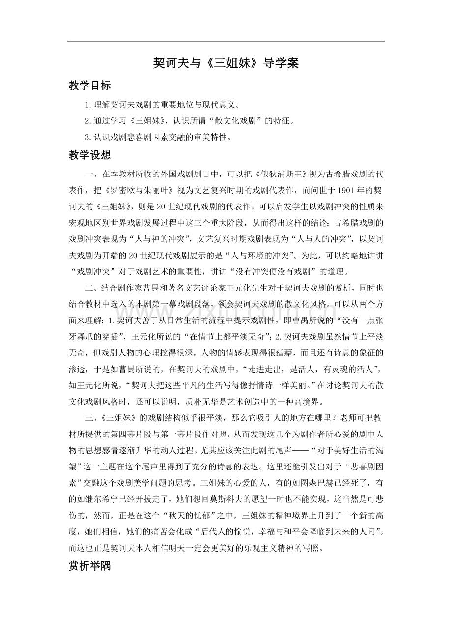 2.通过学习《三姐妹》,认识所谓“散文化戏剧”的特征。