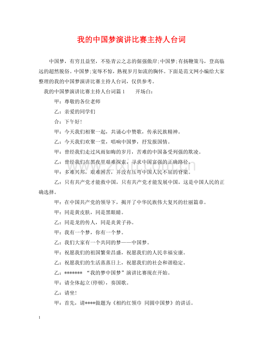 中国梦,有穷且益坚,不坠青云之志的倔强傲岸;中国梦;有扬鞭策马,登高临远的超然脱俗。中国梦;宠辱不惊,熟视岁月如流的胸怀。下面是范文网小编给大家整理的我的中国梦演讲比赛主持人台词,仅供参考。