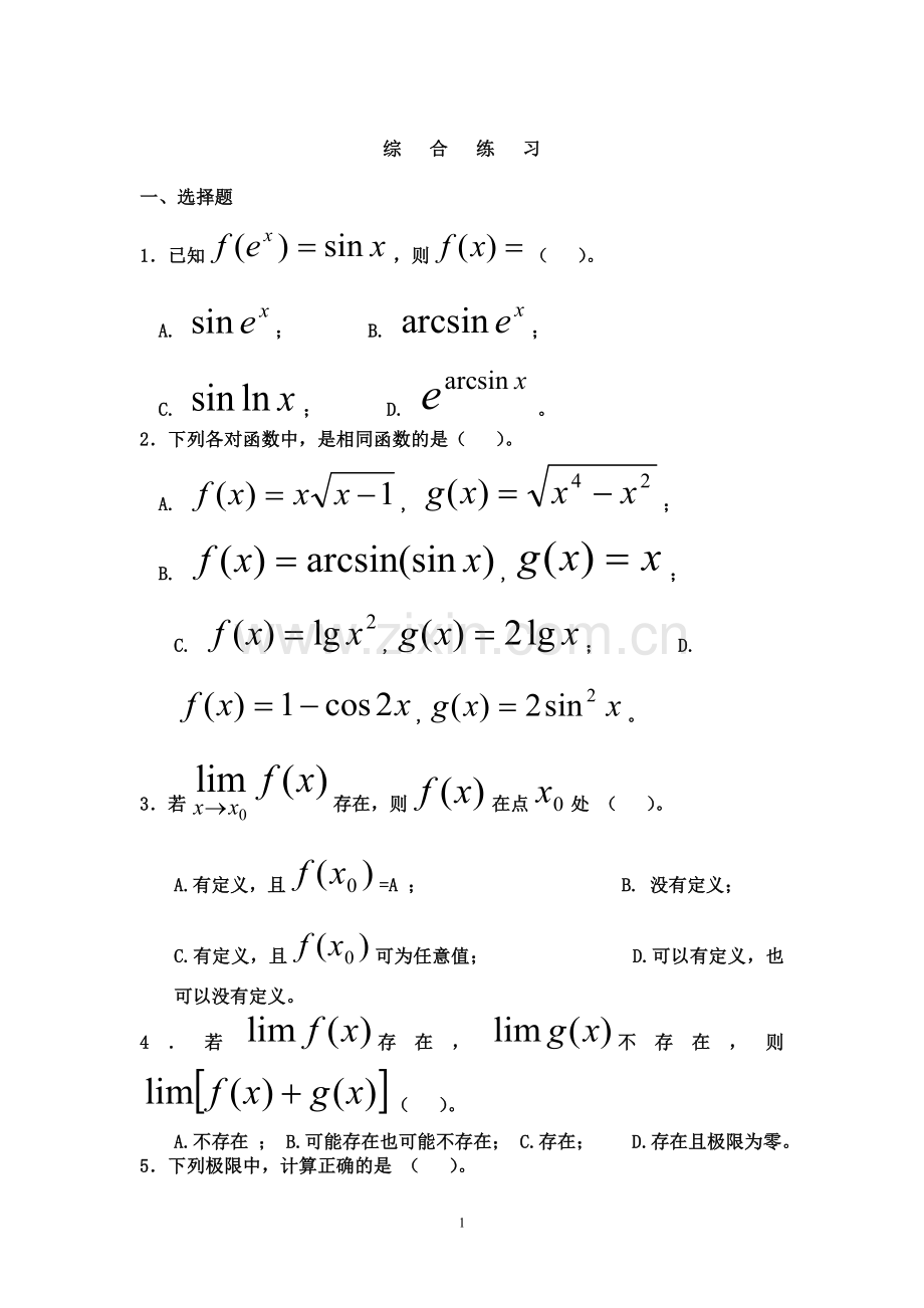 4.熟练掌握两个重要极限;掌握无穷小的性质。