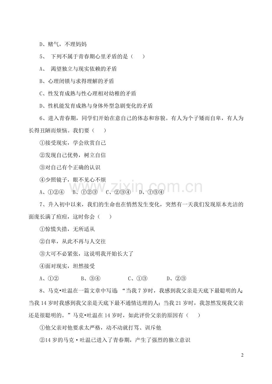 7、升入初中以来,我们的生命也在悄然发生变化,突然有一天我们发现原本光洁的面庞长满了痘痘,这时你会( )