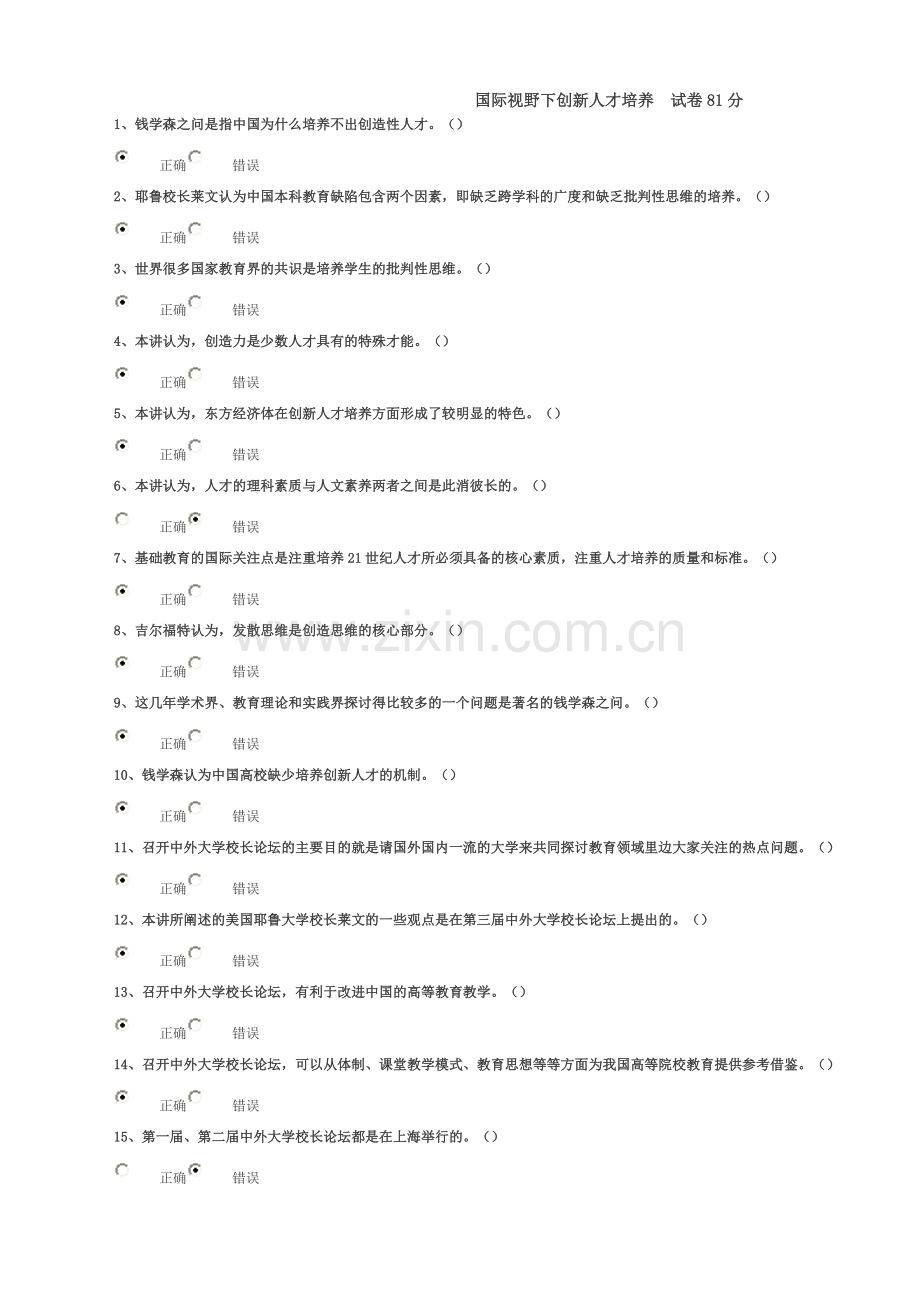 国际视野下创新人才培养 试卷81分