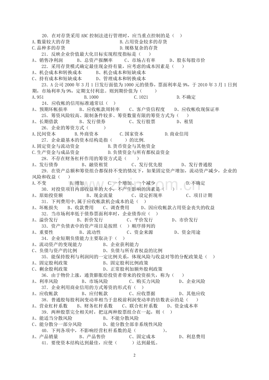 19、对于现金余额,不能只考虑风险,也不能只考虑报酬,必须将风险与报酬相互