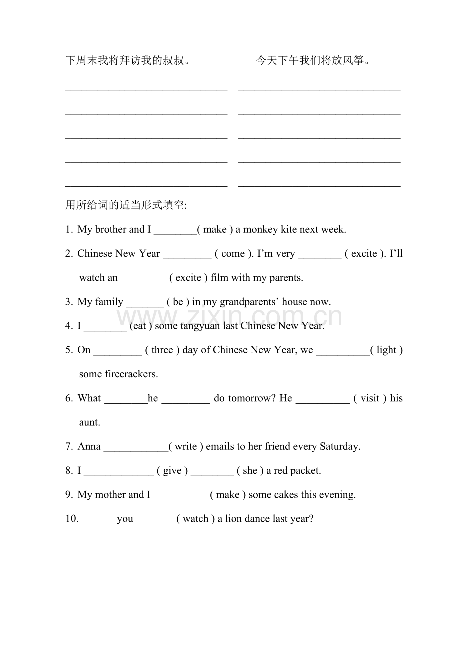 2. Chinese New Year _________ ( come ). I’m very ________ ( excite ). I’ll watch an _________( excite ) film with my parents.