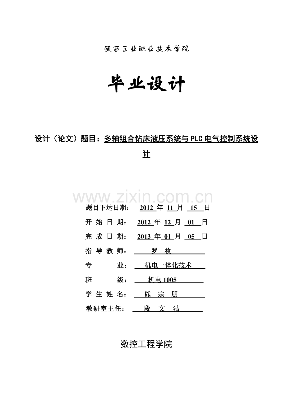设计(论文)题目:多轴组合钻床液压系统与PLC电气控制系统设计