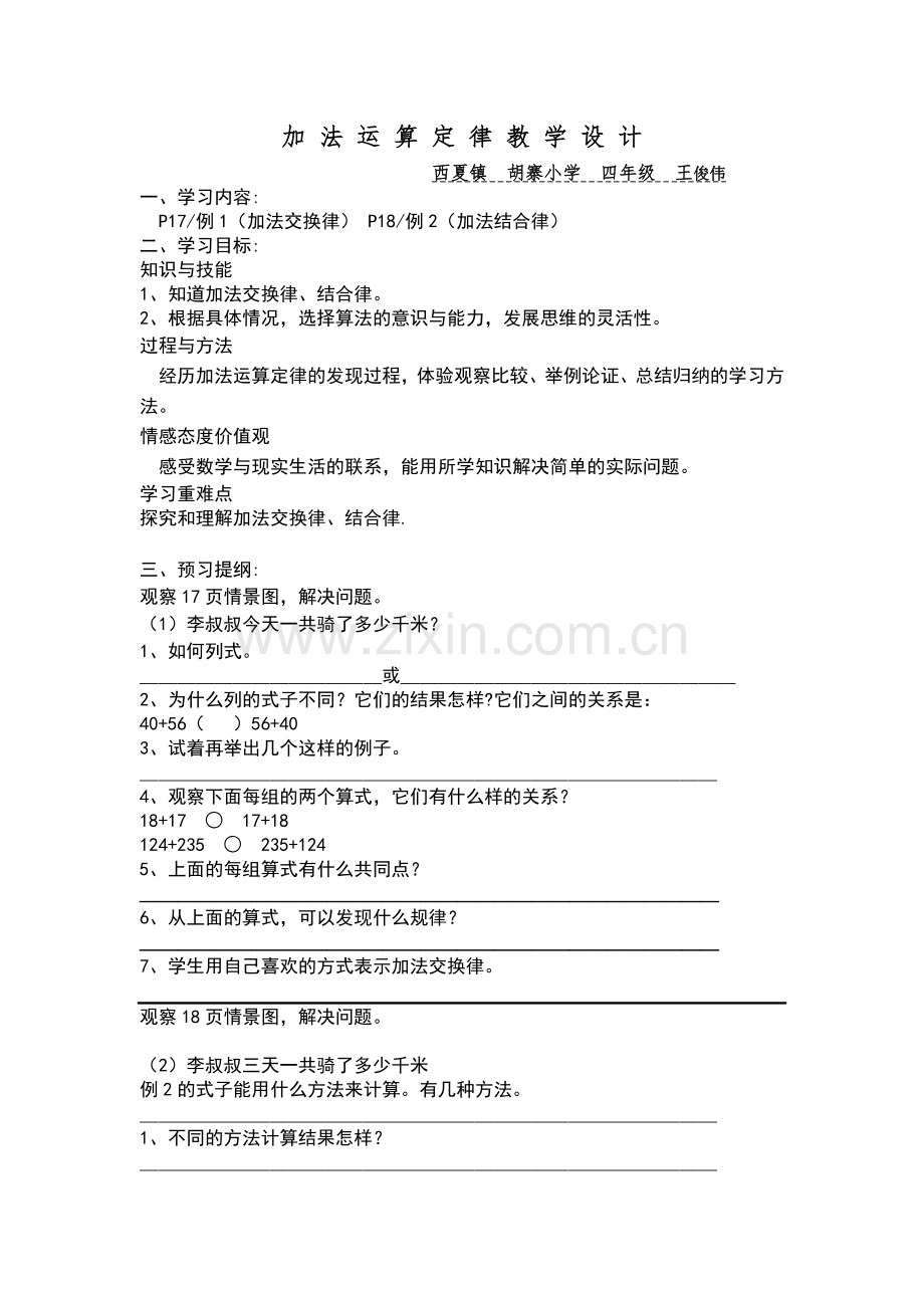 加 法 运 算 定 律 教 学 设 计