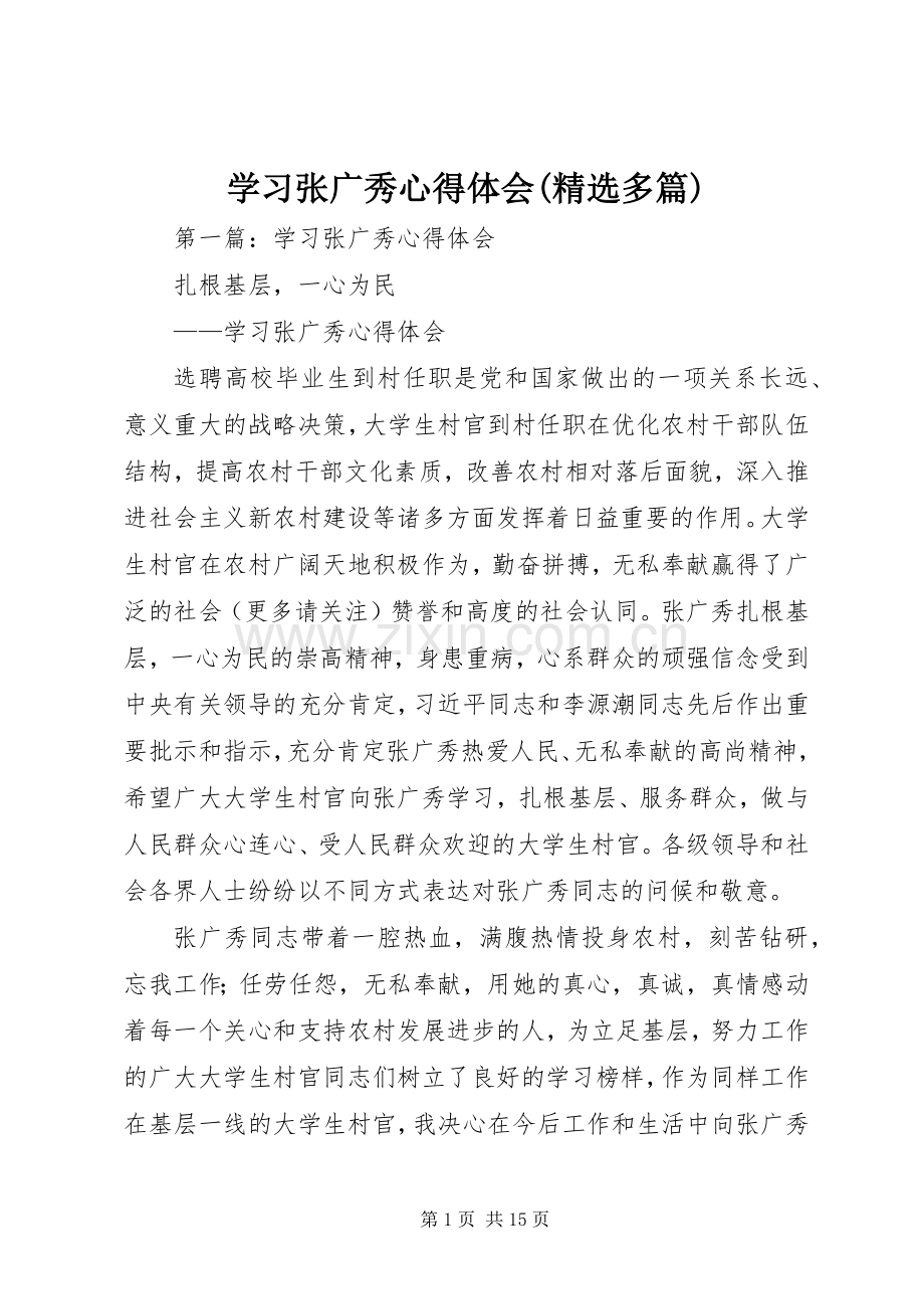 学习张广秀心得体会(精选多篇)
